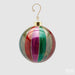 Meravigliose palline a righe multicolore con rifiniture in glitter oro per donare ancora più luminosità al pezzo. Ideale per qualsiasi tipologia di albero grazie alle sue diverse tonalità e per alberi a tema Circo.